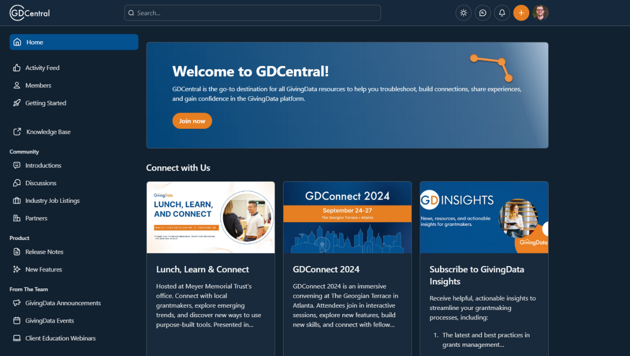 At GivingData, we understand the importance of providing not just a grants management software, but an engaging learning environment where our community can thrive. That’s why we’re thrilled to introduce GDCentral as a pivotal component of ensuring our clients’ continued success with the GivingData platform.